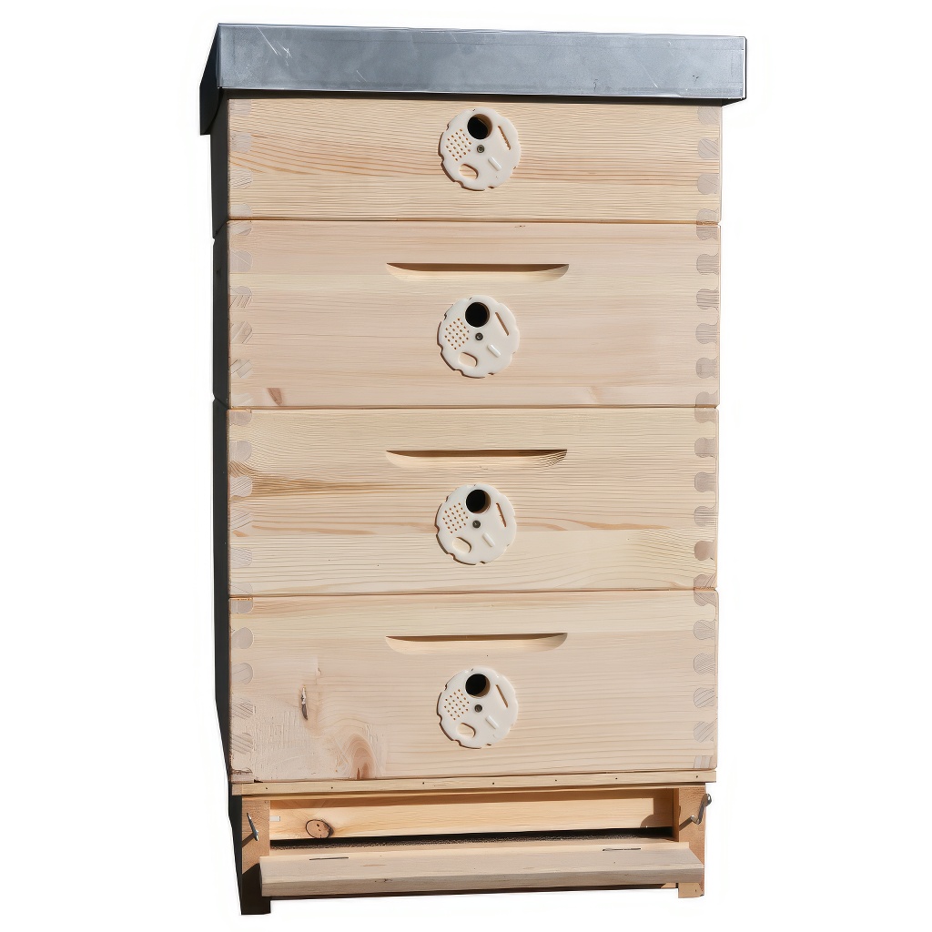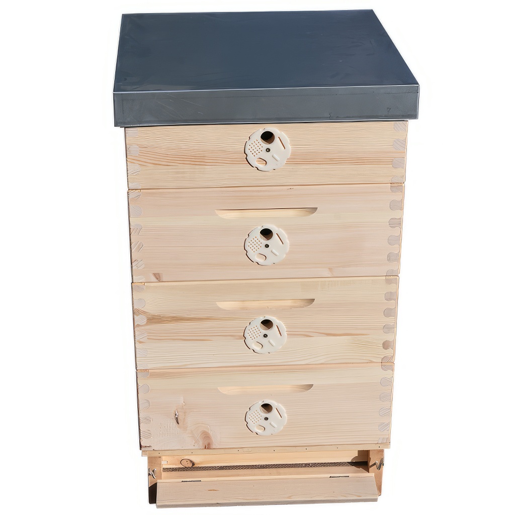 B10 beehive set with four shallow supers. Suitable for nucleus colonies. Ideal for most strong bee colonies. This set can hold 40 frames of 42x17 size.