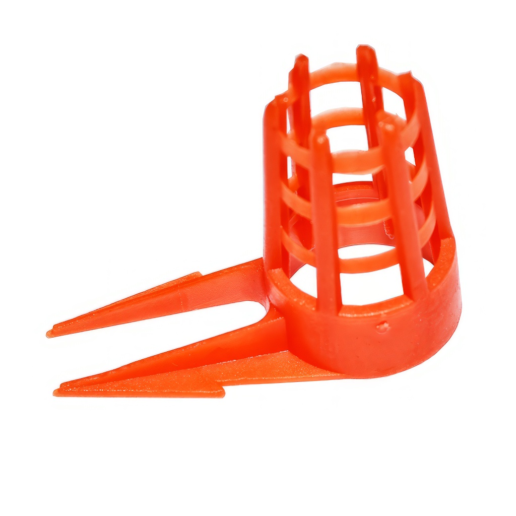 The protective cage is made of durable plastic and designed to prevent chewing out of the queen cell from the side while protecting it from mechanical damage. The shape of the protector leaves enough space for air circulation, which is essential for proper queen bee development. Installation is simple – the cage can be used on a queen cell cup (up to 12 mm diameter), both with and without a plug.