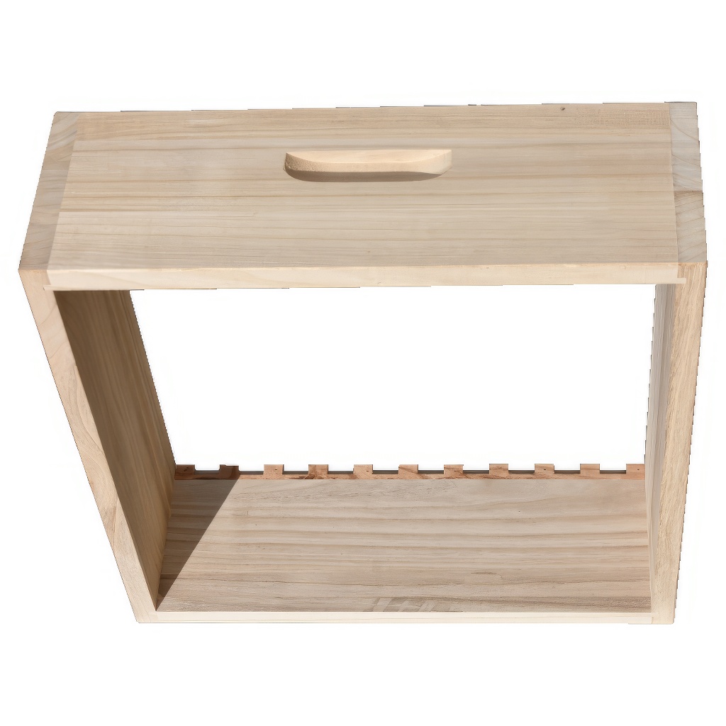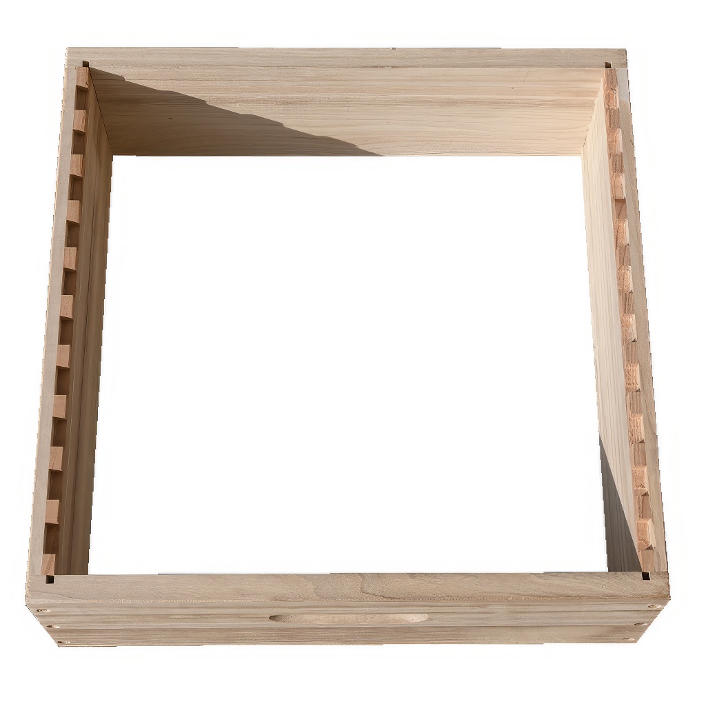 With a wooden comb rack for 10 frames, for 12 Dadant Blatt frames, shallow super for frames size 470 x 435 x 159 mm.