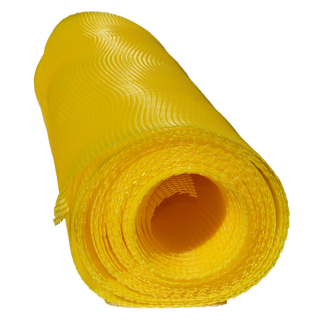 Flexible yellow plastic mesh sold by the meter. Regular 5 × 5 mm openings allow mite drop and good air circulation while preventing bee passage. The mesh is lightweight, easily cut to the required size according to hive type, and is hygienically safe.