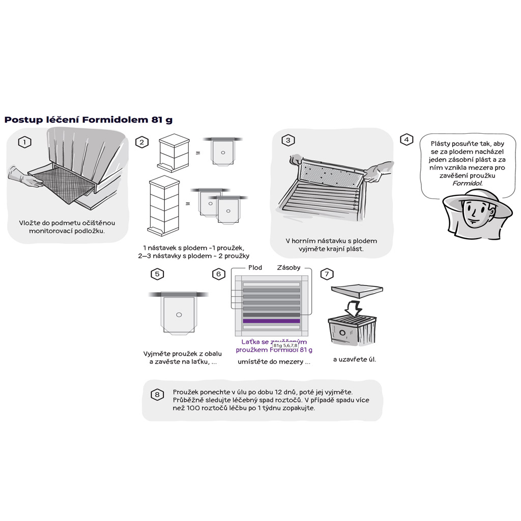 Formidol is final product for fighting with varroasis. One package include evaporating plate impregnated with acid (81 g).