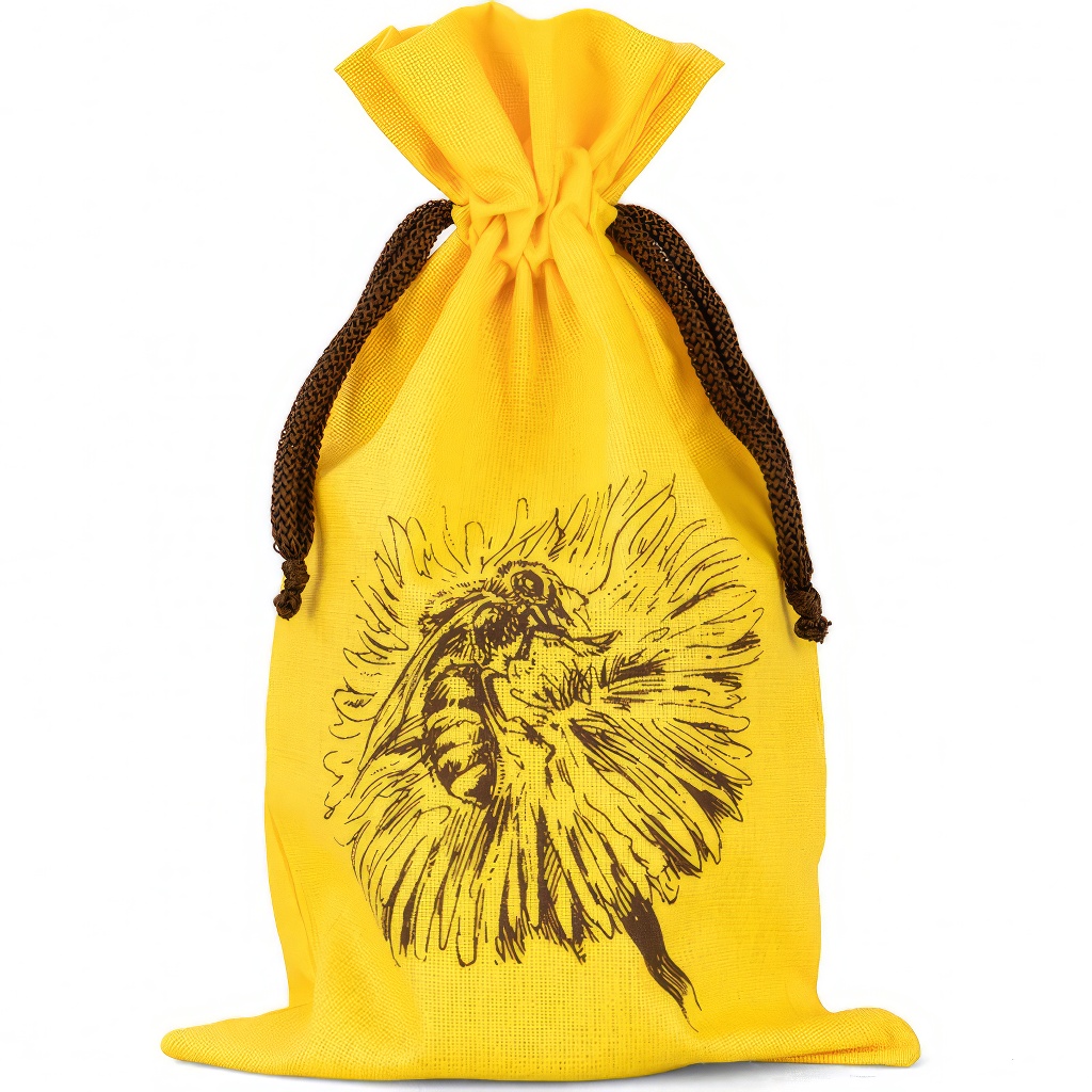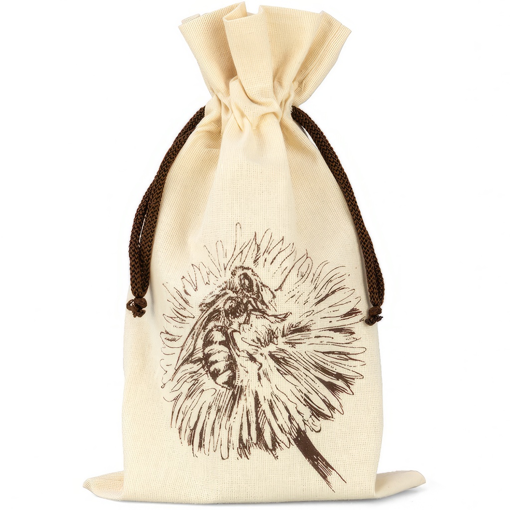 Unbleached cotton bag with "flower" print and drawstring closure. The gift bag is suitable for jars with honey content of approximately 1000 g of honey.