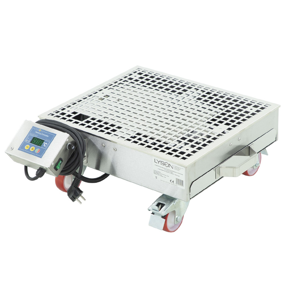 The super heater is made of stainless steel, which is suitable for heating supers in unheated spaces. The heater is suitable for both Langstroth and 39x24 supers. You can heat the supers during uncapping and honey extraction for several hours. Warm air circulates between the frames using convection currents, which facilitates the uncapping and honey extraction process.