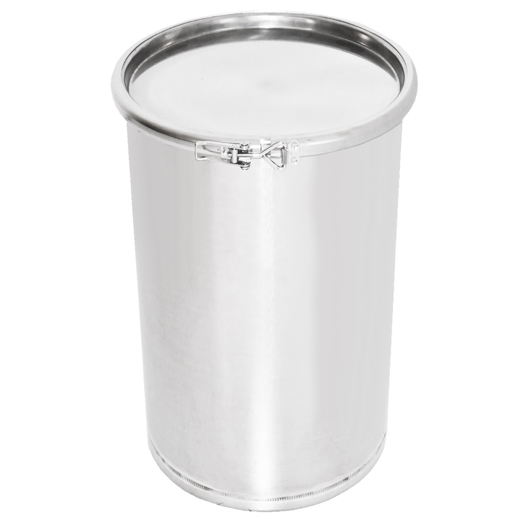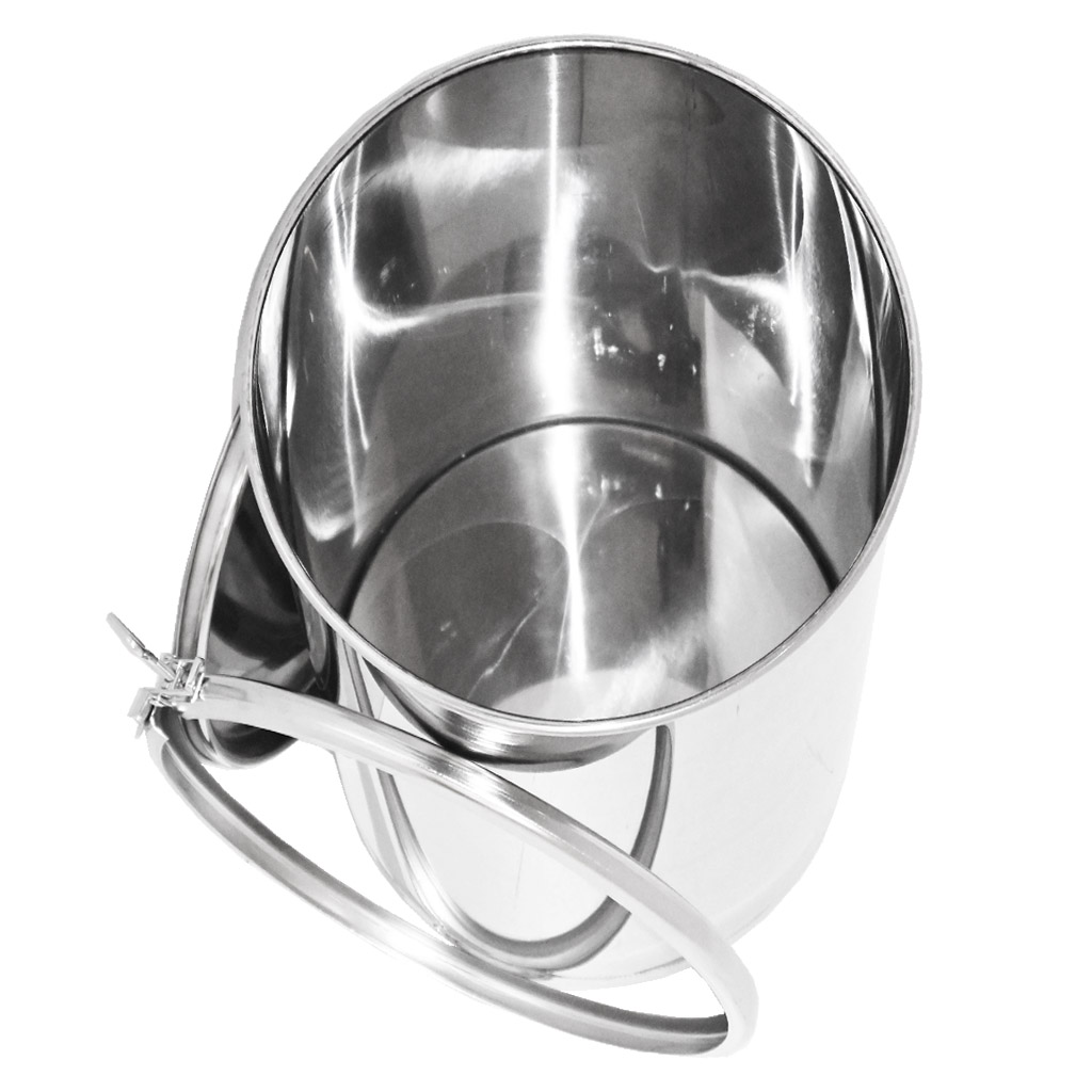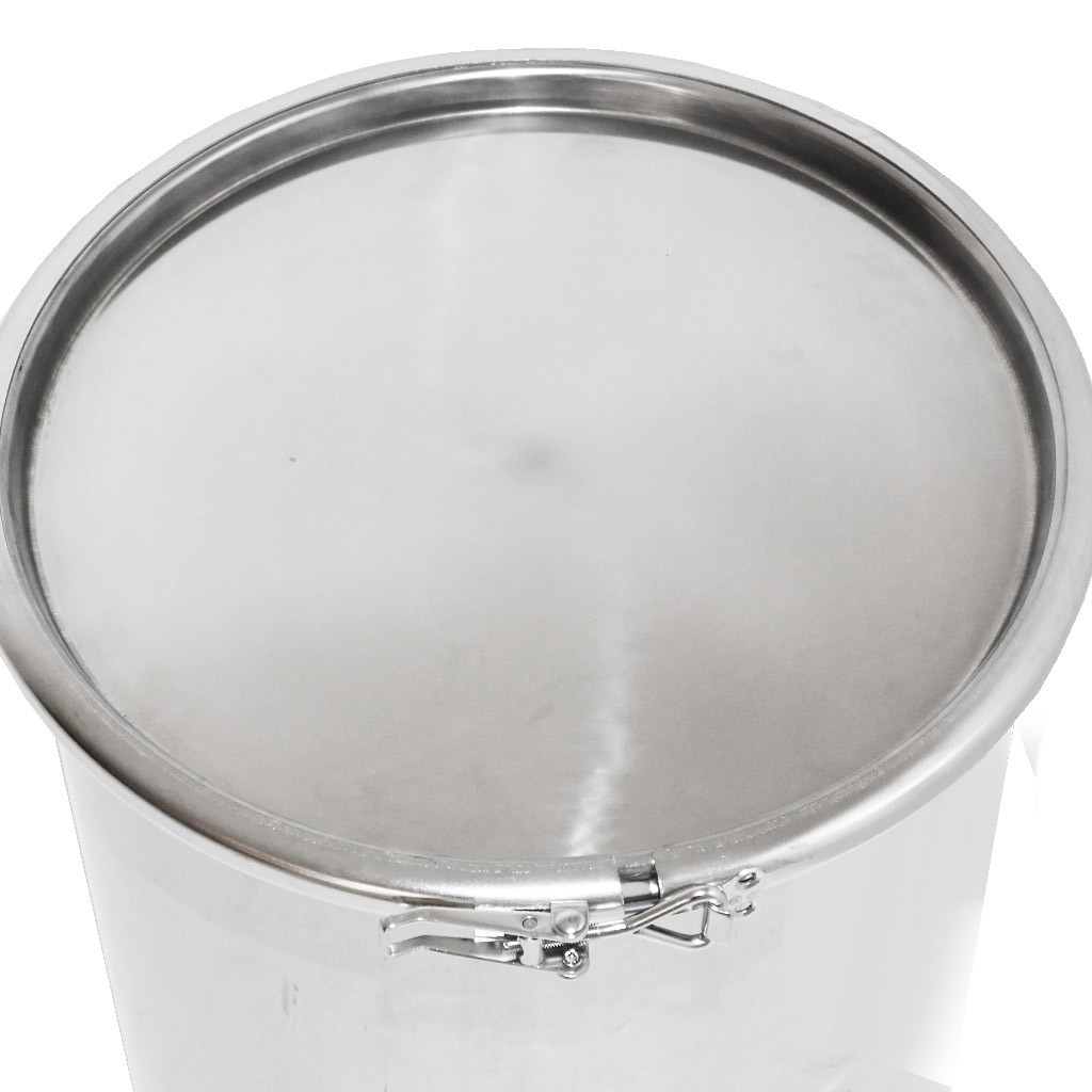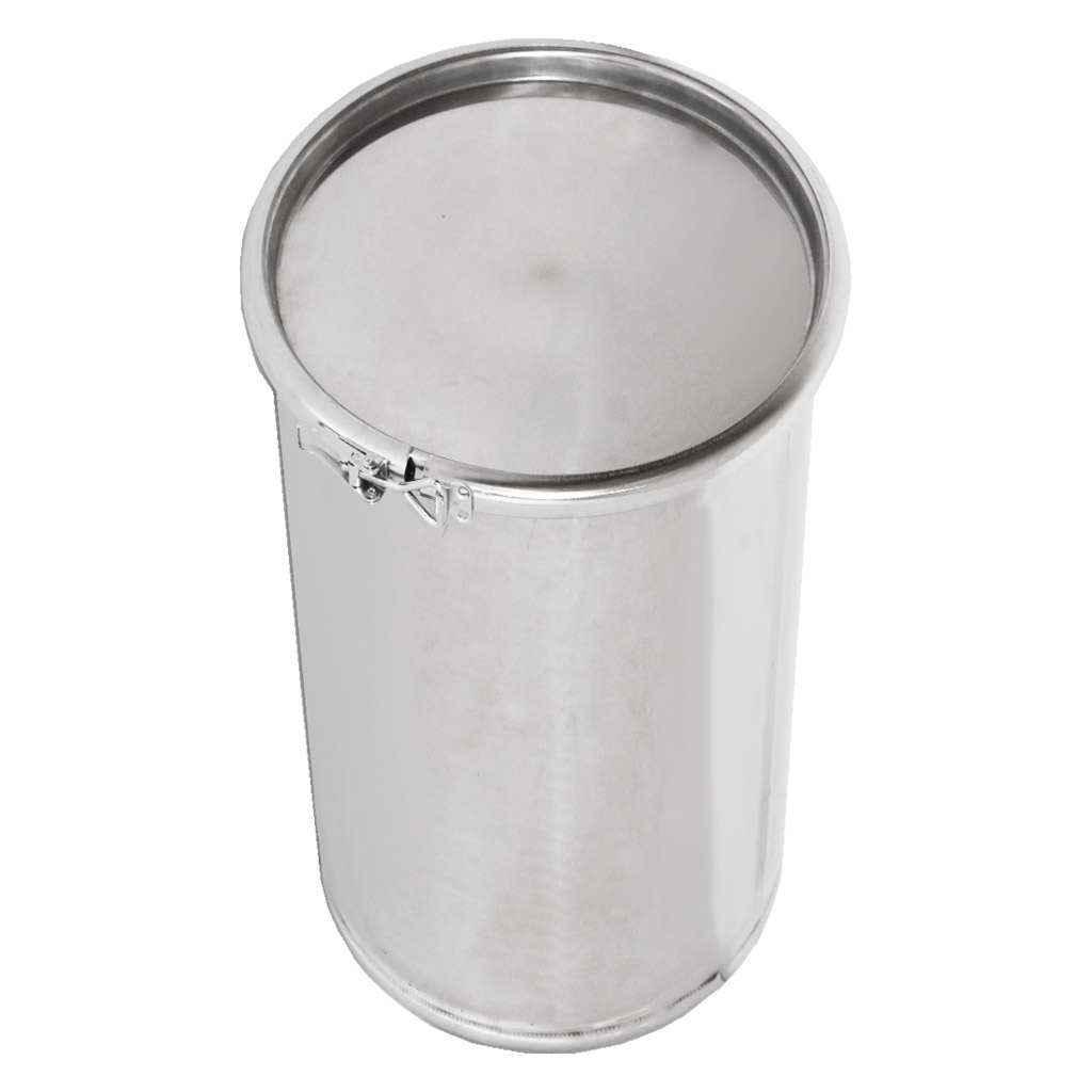 High-quality stainless steel container for honey storage. Equipped with a sealing lid and hooks for secure fastening of the lid to the container. When empty, the containers are stackable. They are manufactured from high-quality food-grade stainless steel of sufficient thickness (0.8 to 1 mm), so that unwanted dents cannot easily occur. All parts of the containers are quality welded using plasma welding. The construction emphasizes smooth surfaces that are easy to clean, therefore the containers are made from polished stainless steel sheets. All our containers are equipped with stainless steel handles for easy carrying. Dimensions: height 55 cm, diameter 30.5 cm. .
