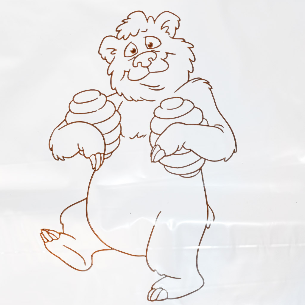 Block of large plastic bags with a bear