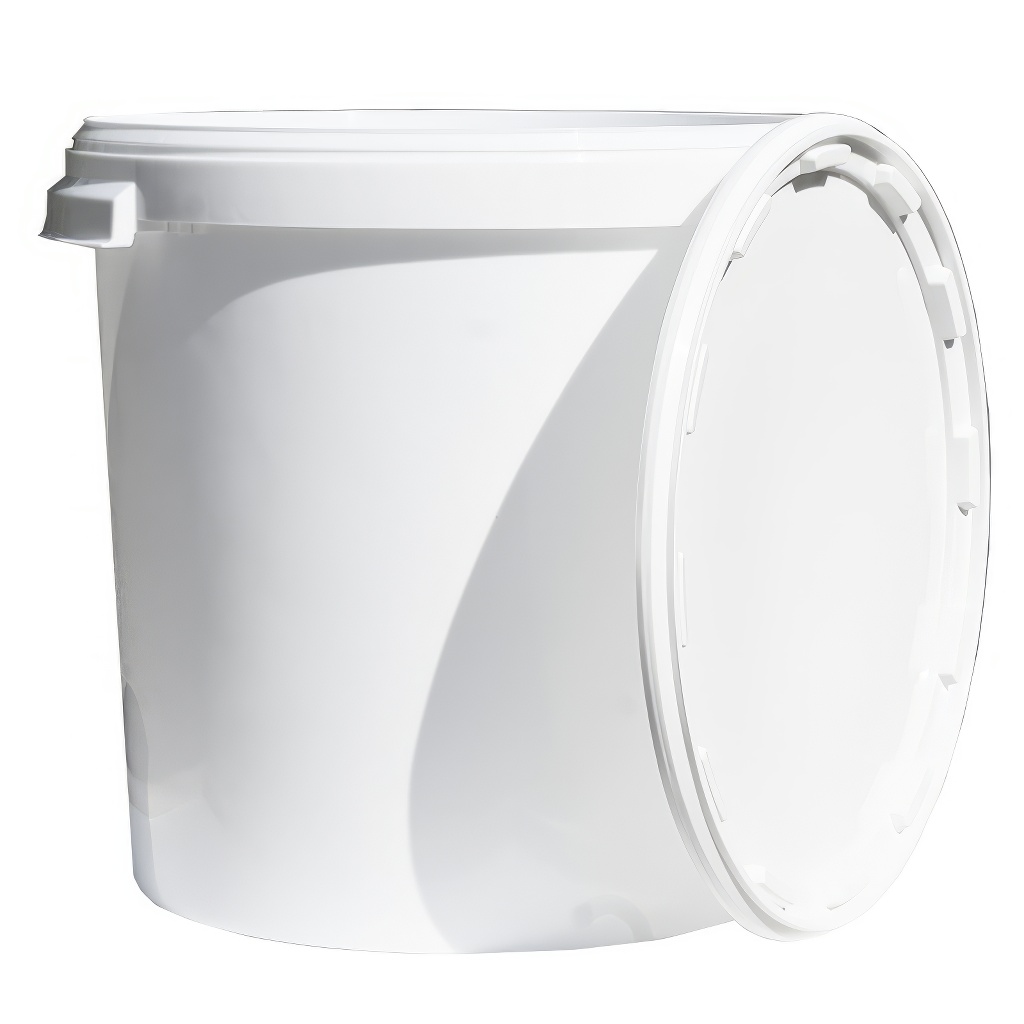 White honey container with lid has a volume of 40 kg. Plastic honey containers are made of smooth and easily washable plastic. Thanks to the quality design, high durability, resistance and strength during handling is achieved. The plastic container is a modern solution for honey, which replaces the classic aluminum honey cans. You can store honey in the container or subsequently trade with it. The bucket content is 40 kg of honey. The height of the 40 kg container is 37 cm, top diameter 37 cm. The bottom diameter of the container is 32 cm. ISO volume of the container is 31.5 l.
