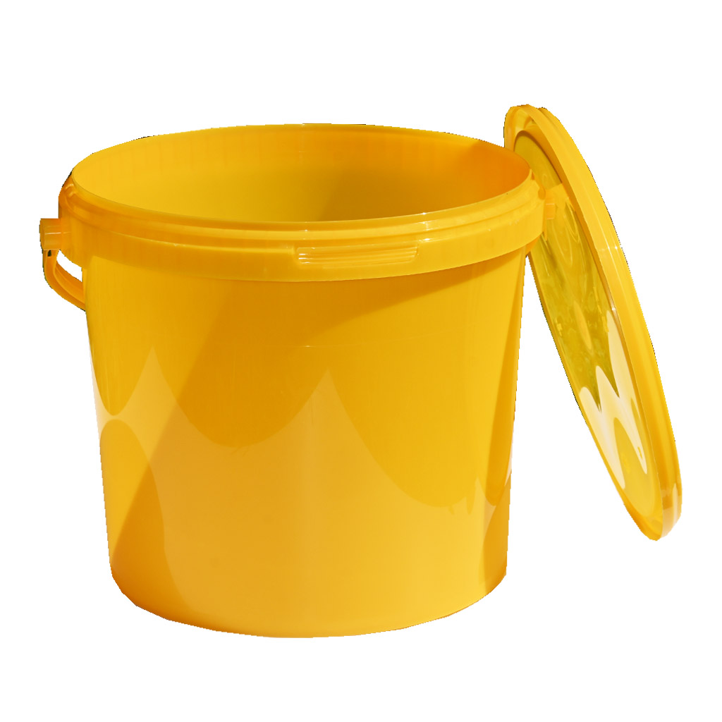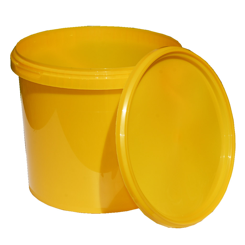 The yellow plastic honey container with lid has a capacity of 7 kg. Plastic honey containers are made from smooth and easily washable plastic. Thanks to the quality design, high durability, resistance and strength during handling are ensured. The plastic honey container is a suitable replacement for aluminum honey cans. The containers are ideal for both storage and honey trade. The bucket content is 7 kg of honey and the material from which the container is made is approved for use in the food industry. The height is 19 cm, upper diameter 22 cm. The bottom diameter of the container is 19 cm. ISO volume of the container is 5.6 l.