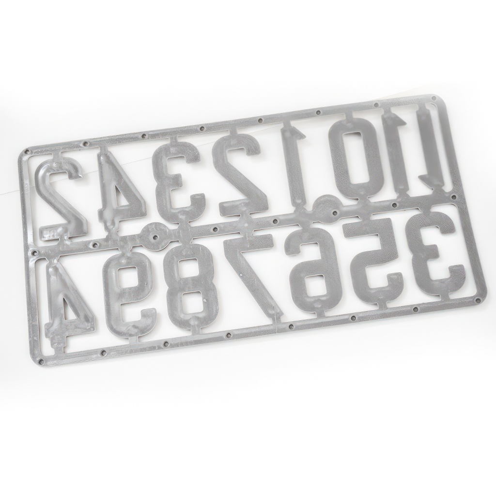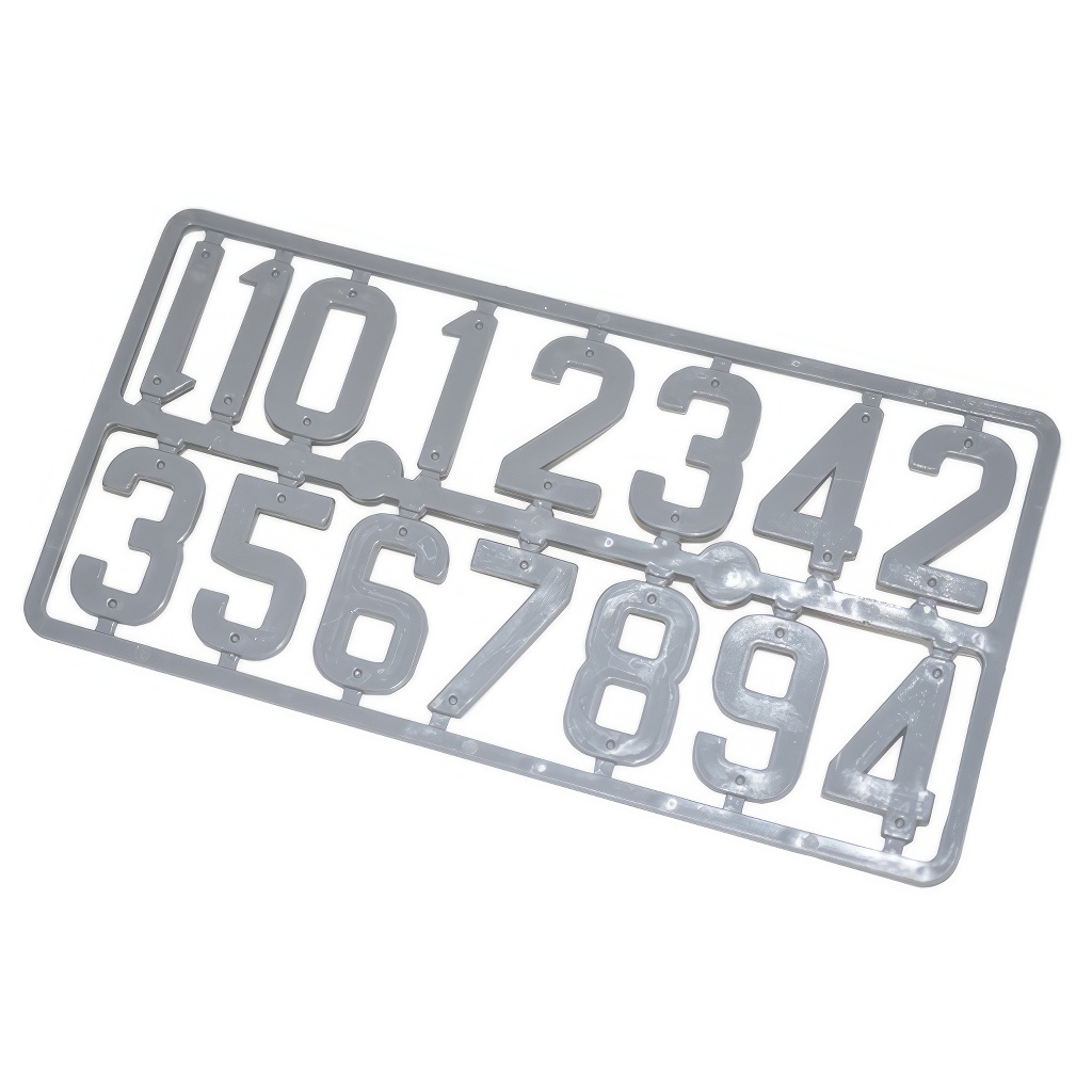 Set of plastic gray numbers. The set of numbers on hives contains a total of 15 digits, consisting of numbers from 1 to 10 + a reserve of other numbers. Each number is attached with two cloves (not included). The supplier of the numbers is the German beekeeping company H. Holtermann.
