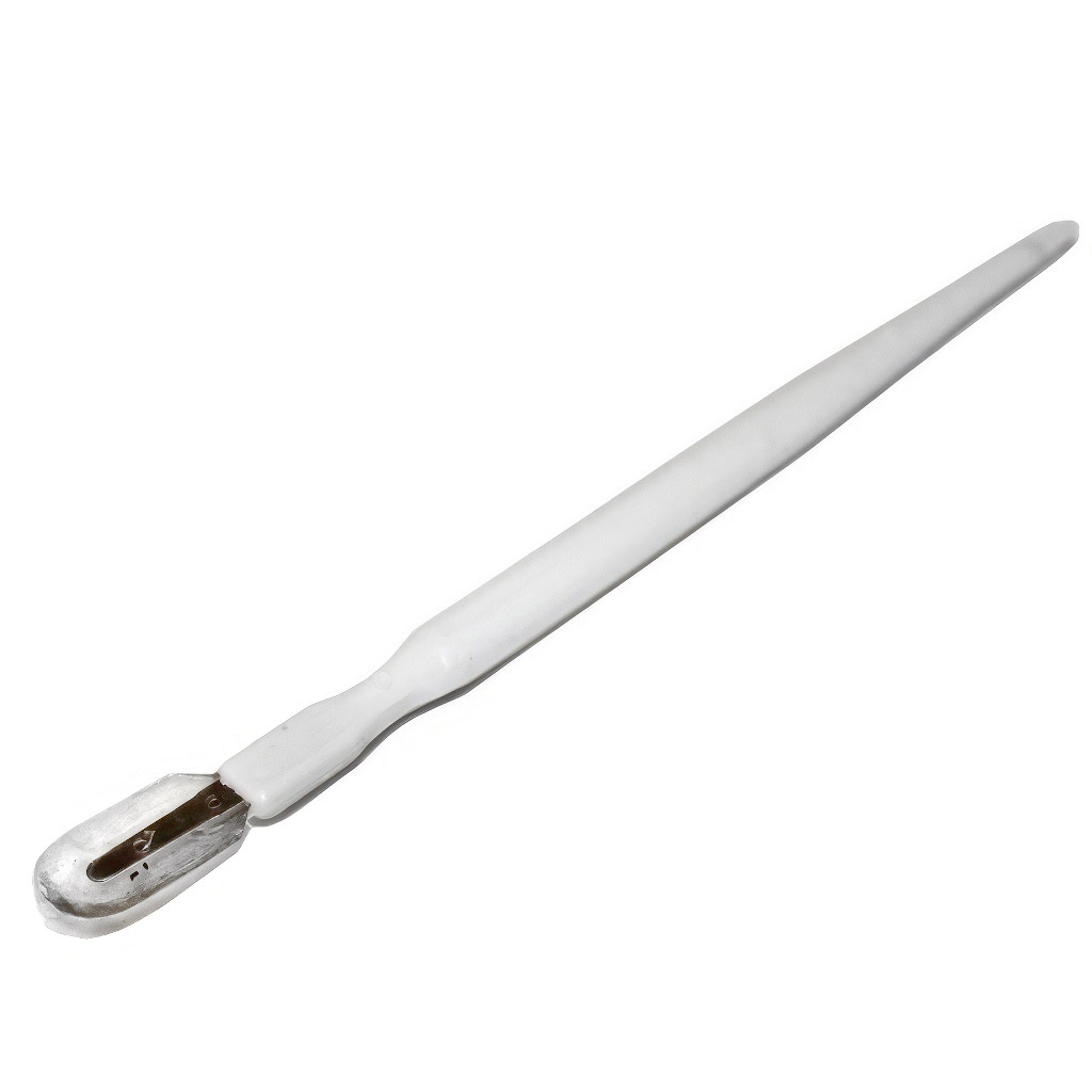 The biggest advantage is the reduction of losses of valuable royal jelly. The soft and very flexible silicone scraper adapts to the rounded walls of natural and plastic queen cell cups and reliably wipes out the entire contents. The scraper is firmly attached with a metal pin, so it maintains its shape and proper pressure during work. The ergonomic handle (in plastic or water-resistant bamboo version) is comfortable to hold and allows precise movement control – you will appreciate this especially when harvesting from a larger number of queen cells, where speed and sensitivity are important.