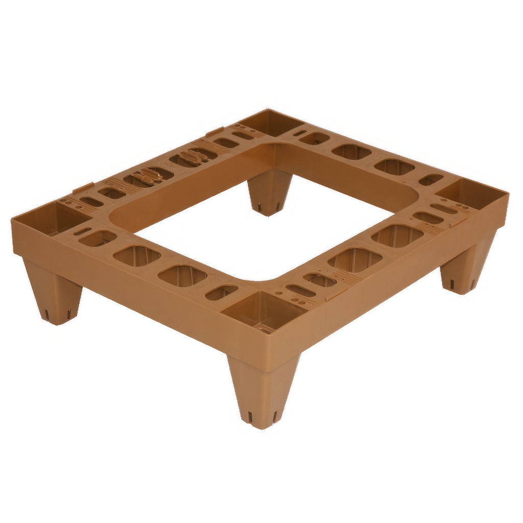 Plastic beehive stand with dimensions 440 x 530 mm and a height of 150 mm. The stand is designed for one hive assembly. Since the stand has a wide edge, it can accommodate any type of hive. This plastic beehive stand is particularly useful for permanent outdoor apiaries and in bee houses.