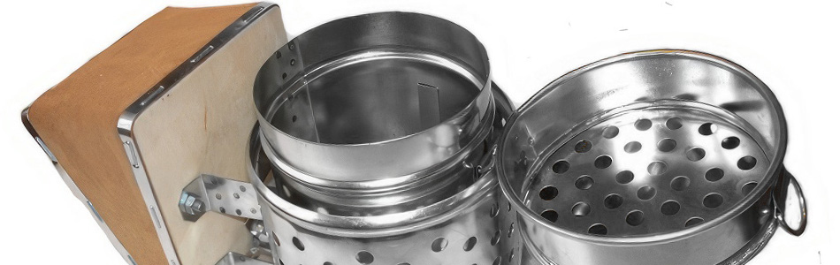 The smoker body is made of noble metal alloys and is tinned for increased durability. A quality leather bellows ensures reliable air supply to the combustion chamber, allowing smooth regulation of smoke quantity. A major advantage is the integrated wire protective guard around the smoker body – it protects your hands from accidental burns and limits direct contact of the hot metal with the hive. The practical handle with hook facilitates carrying and safe hanging on the edge of a super when you set the smoker down during work.
