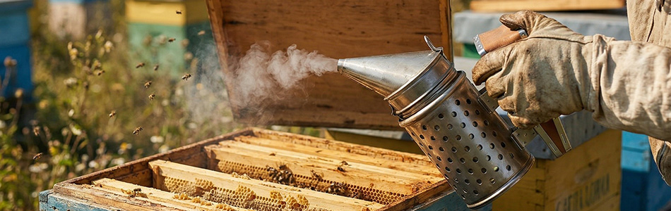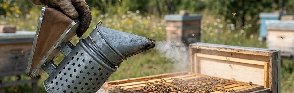 The fuel slowly smolders inside the smoker and the resulting smoke is pushed by the bellows through the chimney via a spark arrester into the hive space. After smoking, bees usually remain calmer on the frames and react less defensively, which you'll appreciate during inspections, expansion, making splits, and other common beekeeping operations. You'll use the smoker for almost every task with the bee colony.
