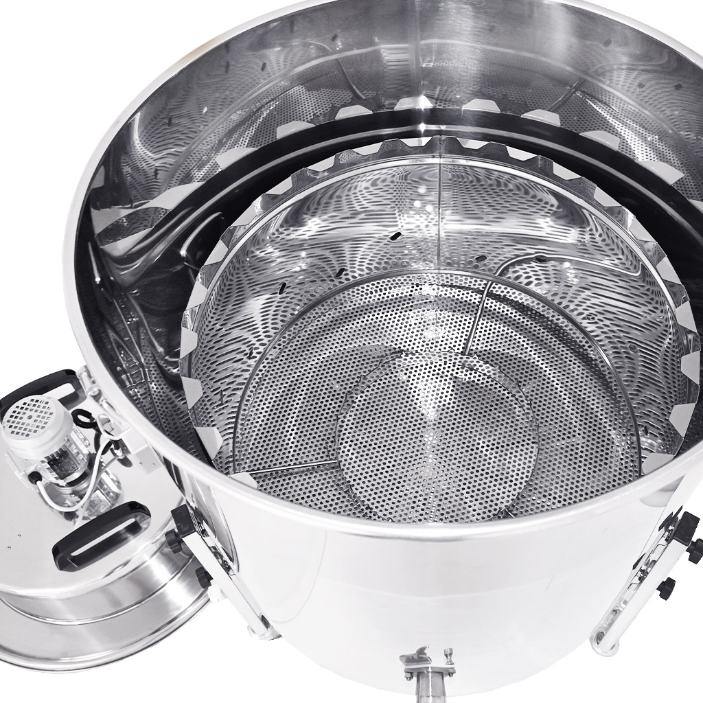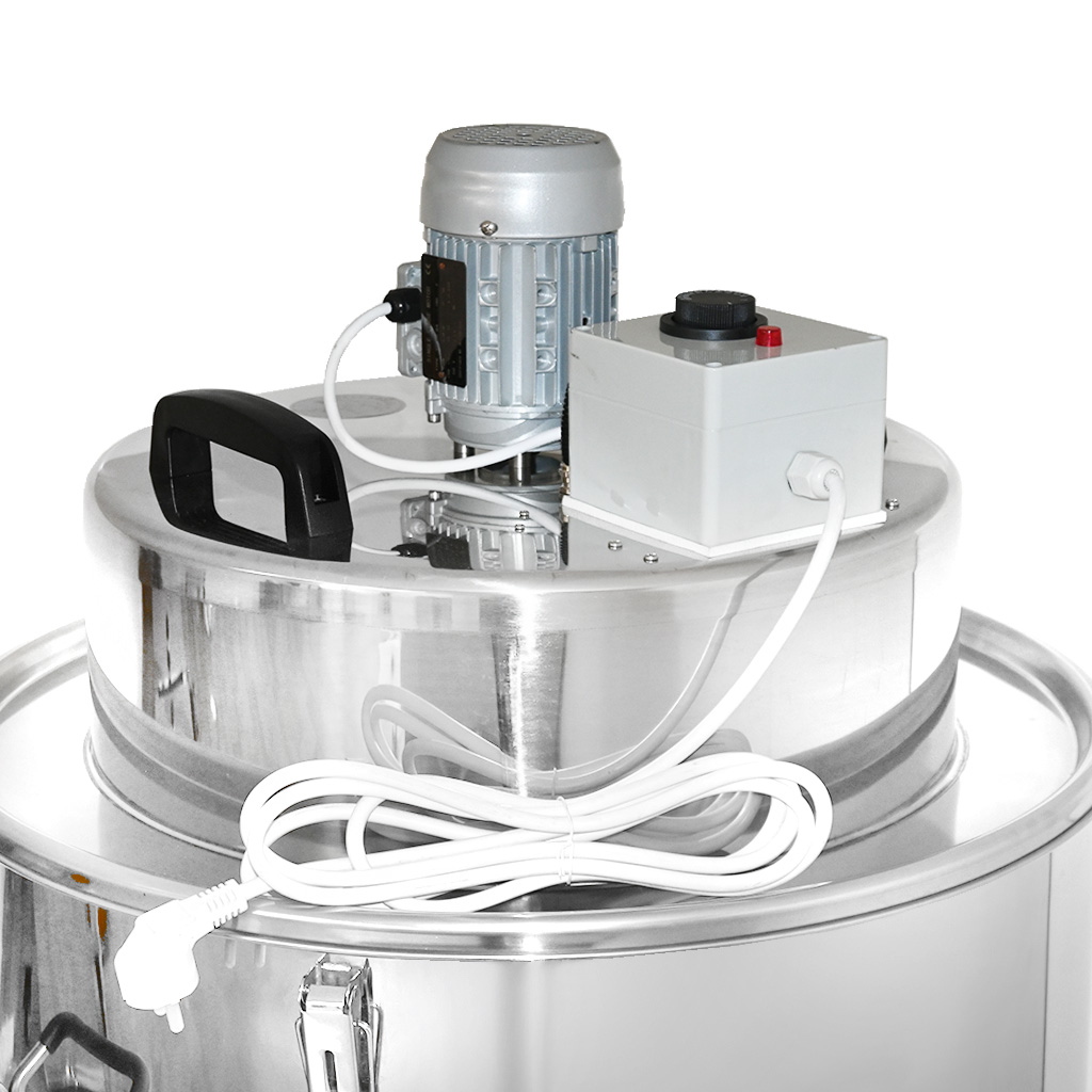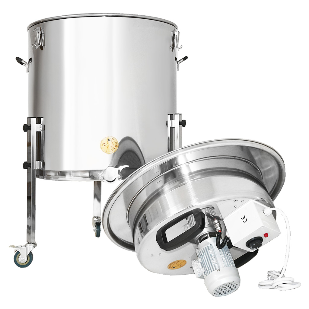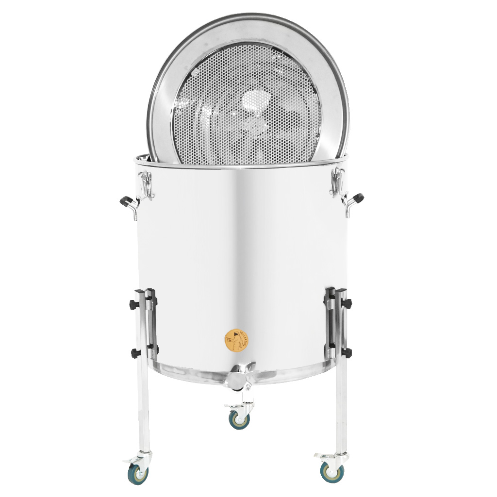 Mellarius is not just a cappings separator. Thanks to its smart design, it performs three tasks in one: it functions as a wax melter, honey separator from cappings, and also as a large-capacity chamber for liquefying. With an internal diameter of 64 cm and internal height of 71 cm, you can easily place larger containers (buckets) or jars with crystallized honey inside.