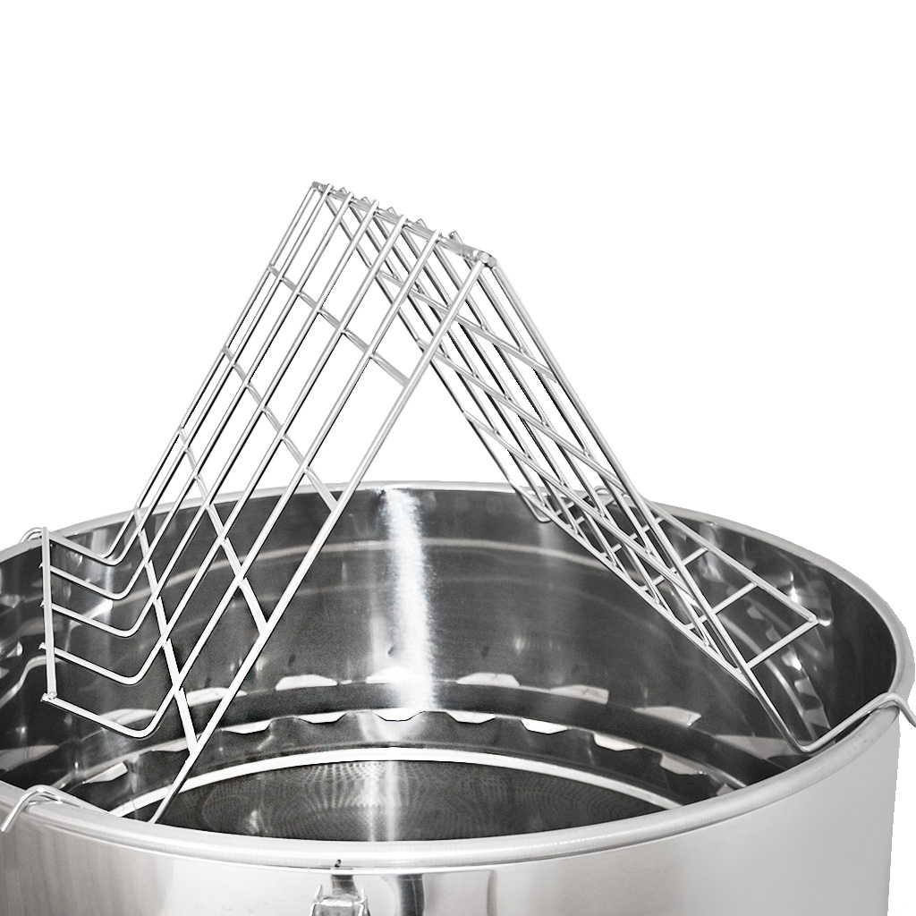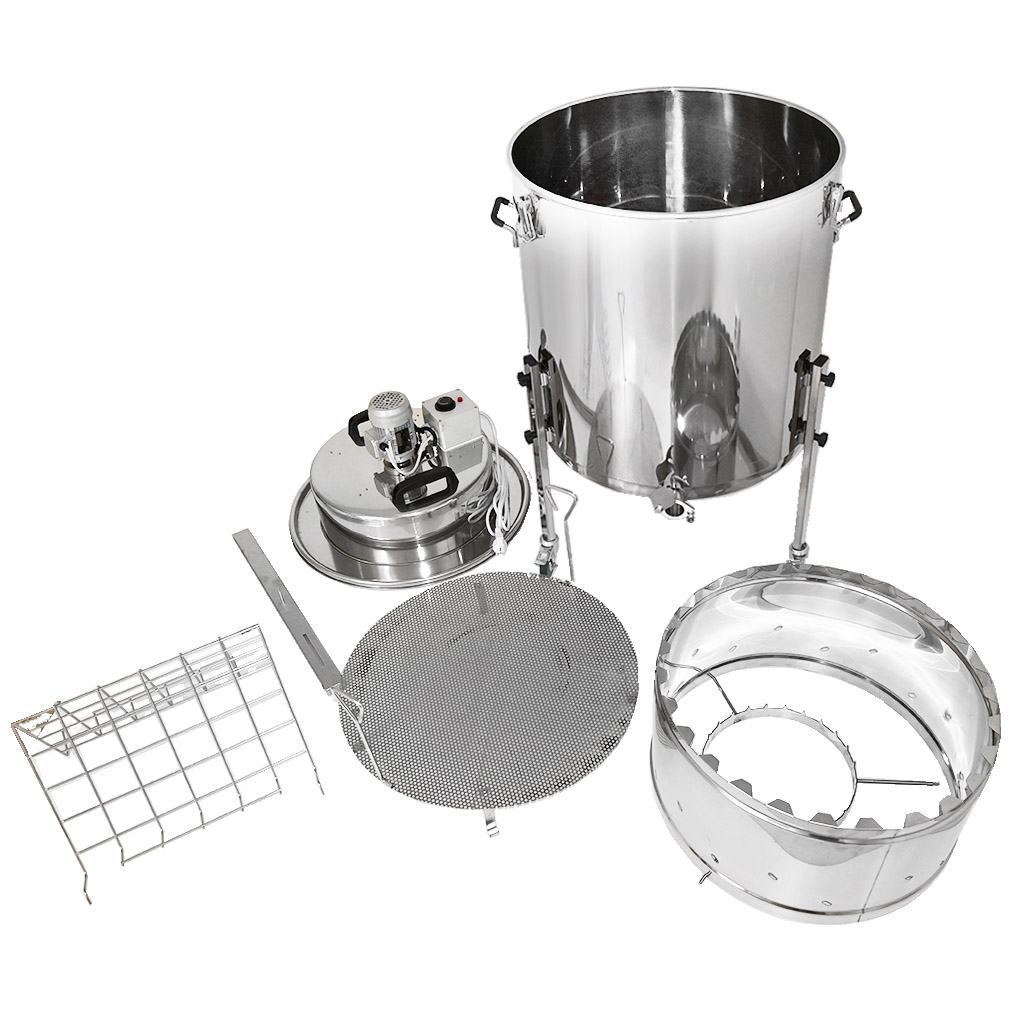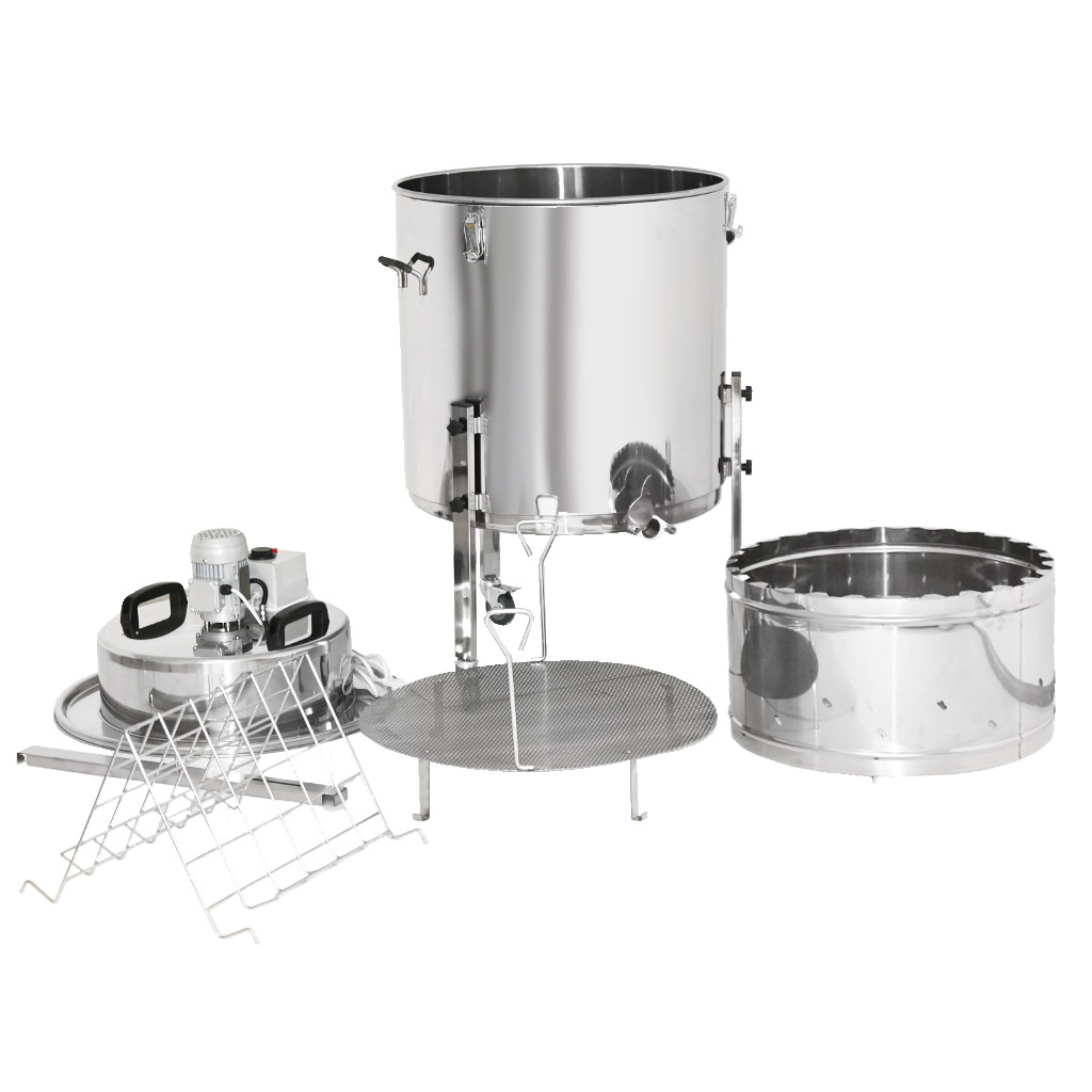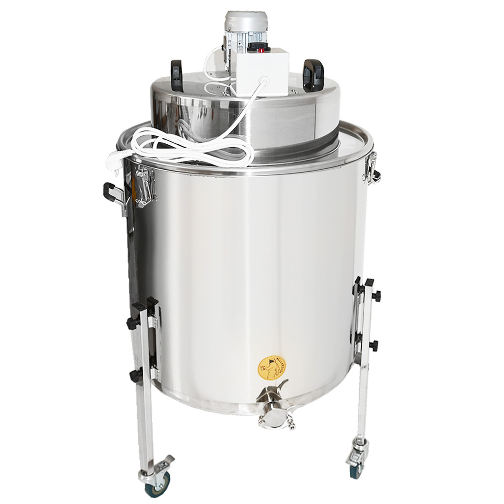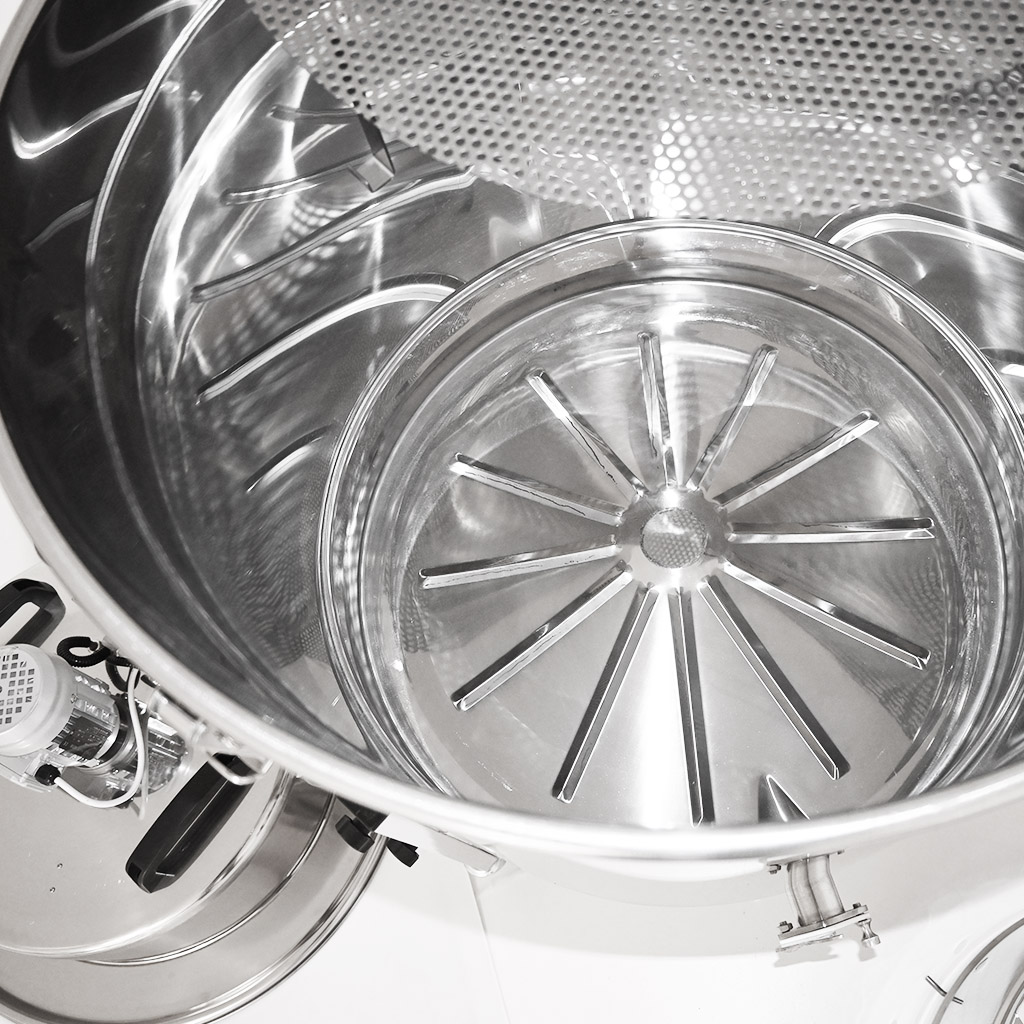 Mellarius is not just a cappings separator. Thanks to its smart design, it performs three tasks in one: it functions as a wax melter, honey separator from cappings, and also as a large-capacity chamber for liquefying. With an internal diameter of 64 cm and internal height of 71 cm, you can easily place larger containers (buckets) or jars with crystallized honey inside.