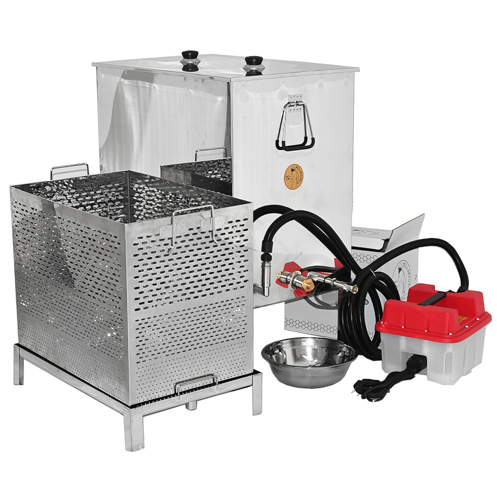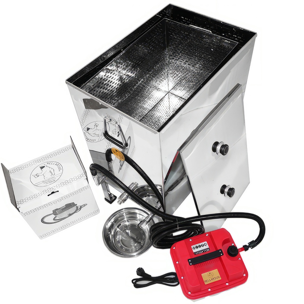 A high-quality rectangular wax extractor designed to easily and quickly melt wax from frames using steam, which is heated by 2.2 kW steam generator (included in the package).
